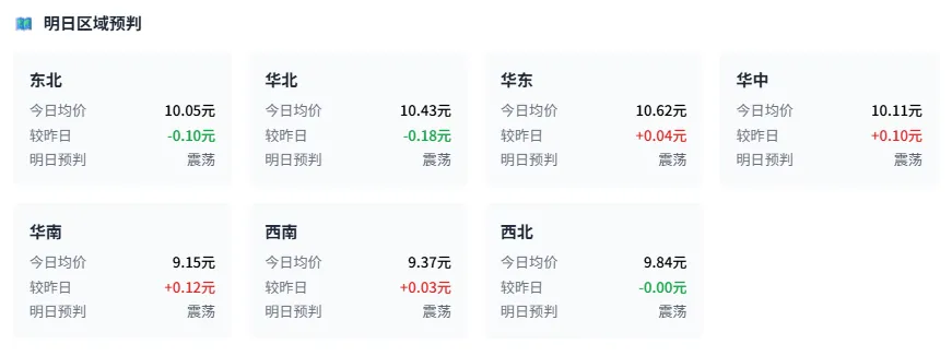 | 广东 | 10.07 | | | ↗上涨 |