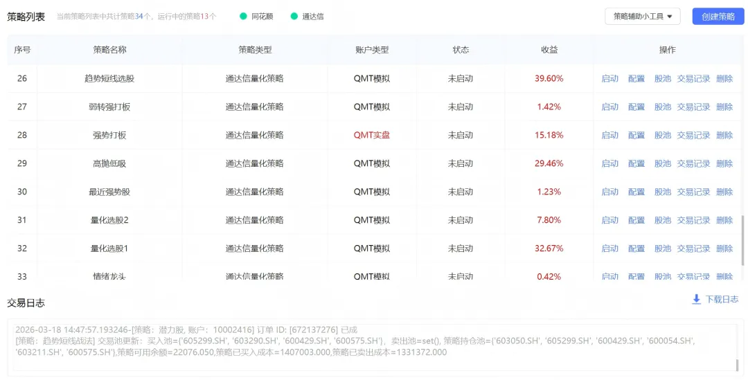 不仅如此,它还打通了从选股到交易的完整闭环,通达信触发的信号,能通过平台直连券商QMT系统自动执行下单,止盈止损全按预设规则严格执行,不用熬大夜盯盘,也彻底规避了情绪化操作的失误。