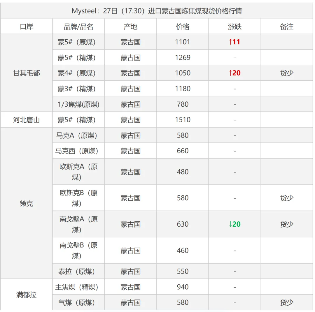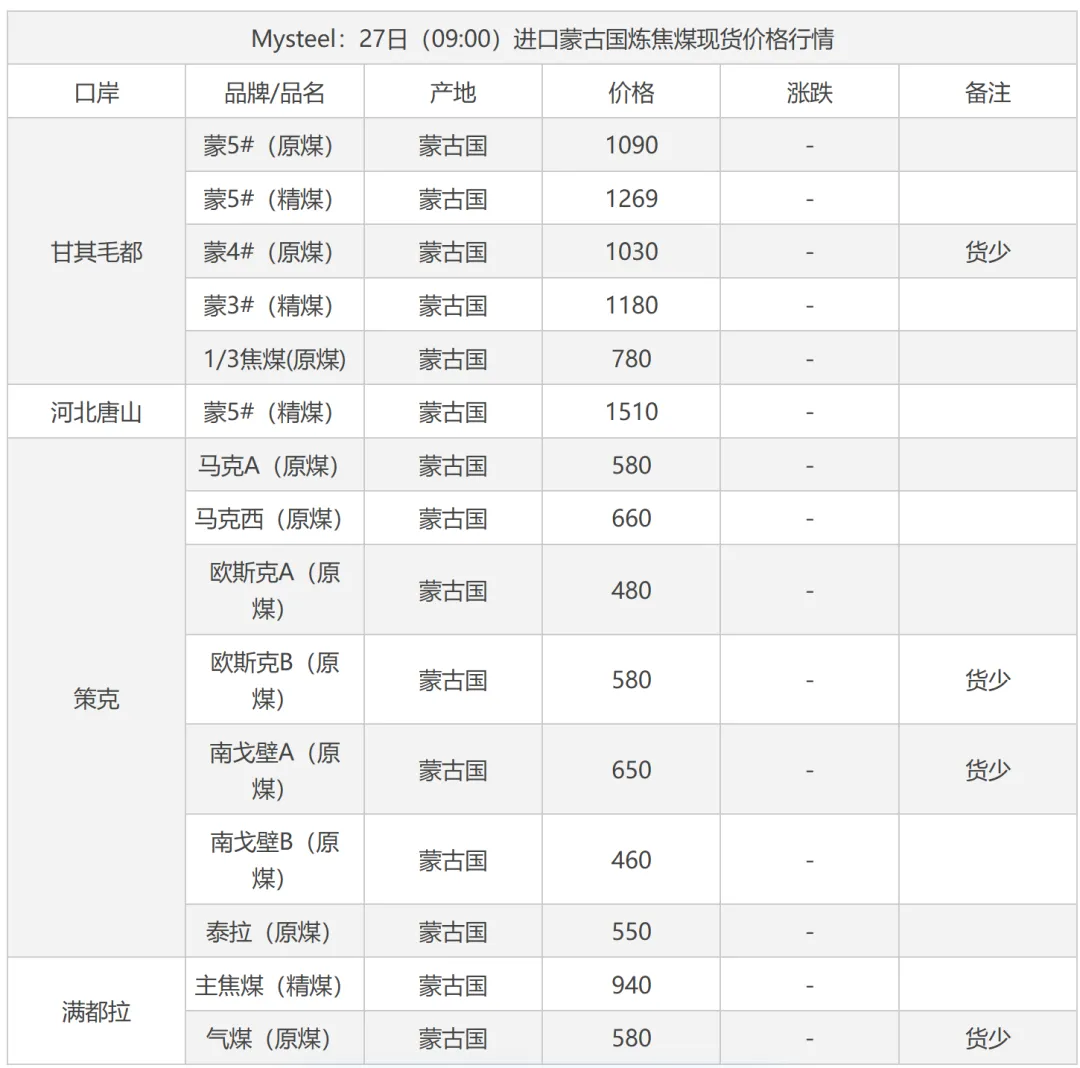 27日太原市场炼焦煤价格暂稳。上周炼焦煤市场行情震荡偏强,整体价格小幅探涨。焦炭发起第三轮提涨,市场信心较为乐观,市场活跃度进一步升温。短期来看,焦企补库签单量开始收缩,节前市场氛围将有所降温,但由于市场预期并未走低,煤价将依旧维持窄幅震荡为主。