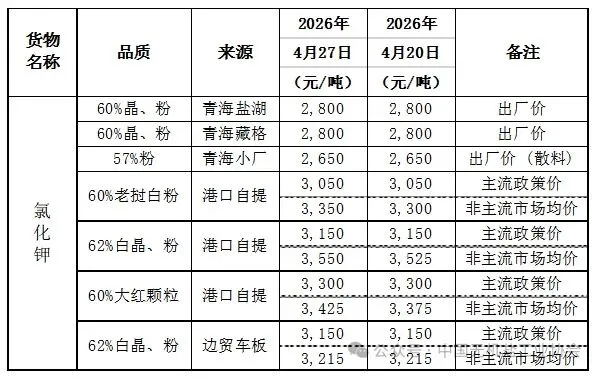 本周边贸车板62%白钾主流政策价3,150元/吨,与上周持平;非主流市场均价3,215元/吨,与上周持平。