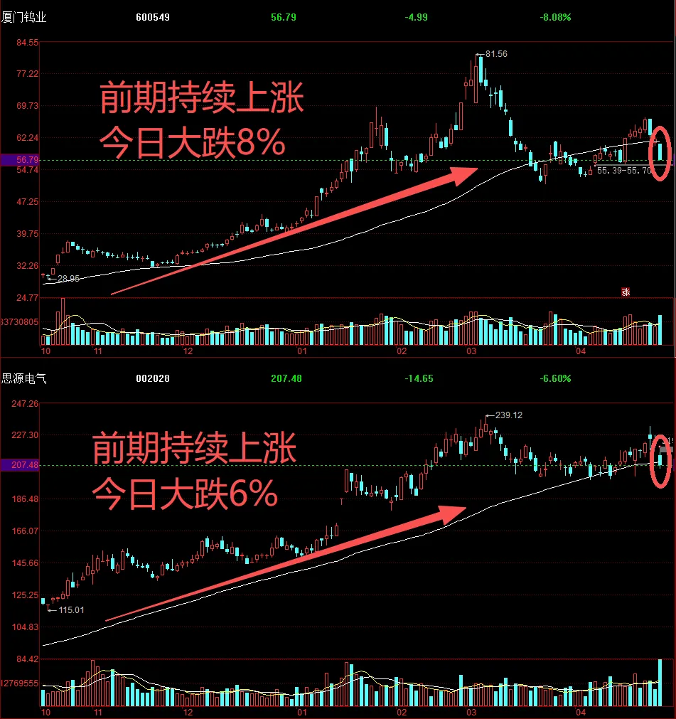 比如厦门钨业、思源电气,这种一季报维持增长的板块内的权重表达,也有大幅下跌。