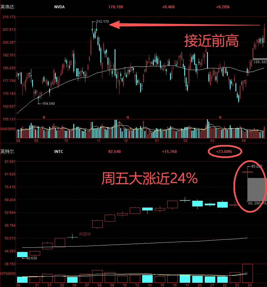 周五英特尔暴涨,引发市场对CPU等相对低位的芯片的补涨,既然是外围引发的,持续性也需要观察英特尔的后续走势。