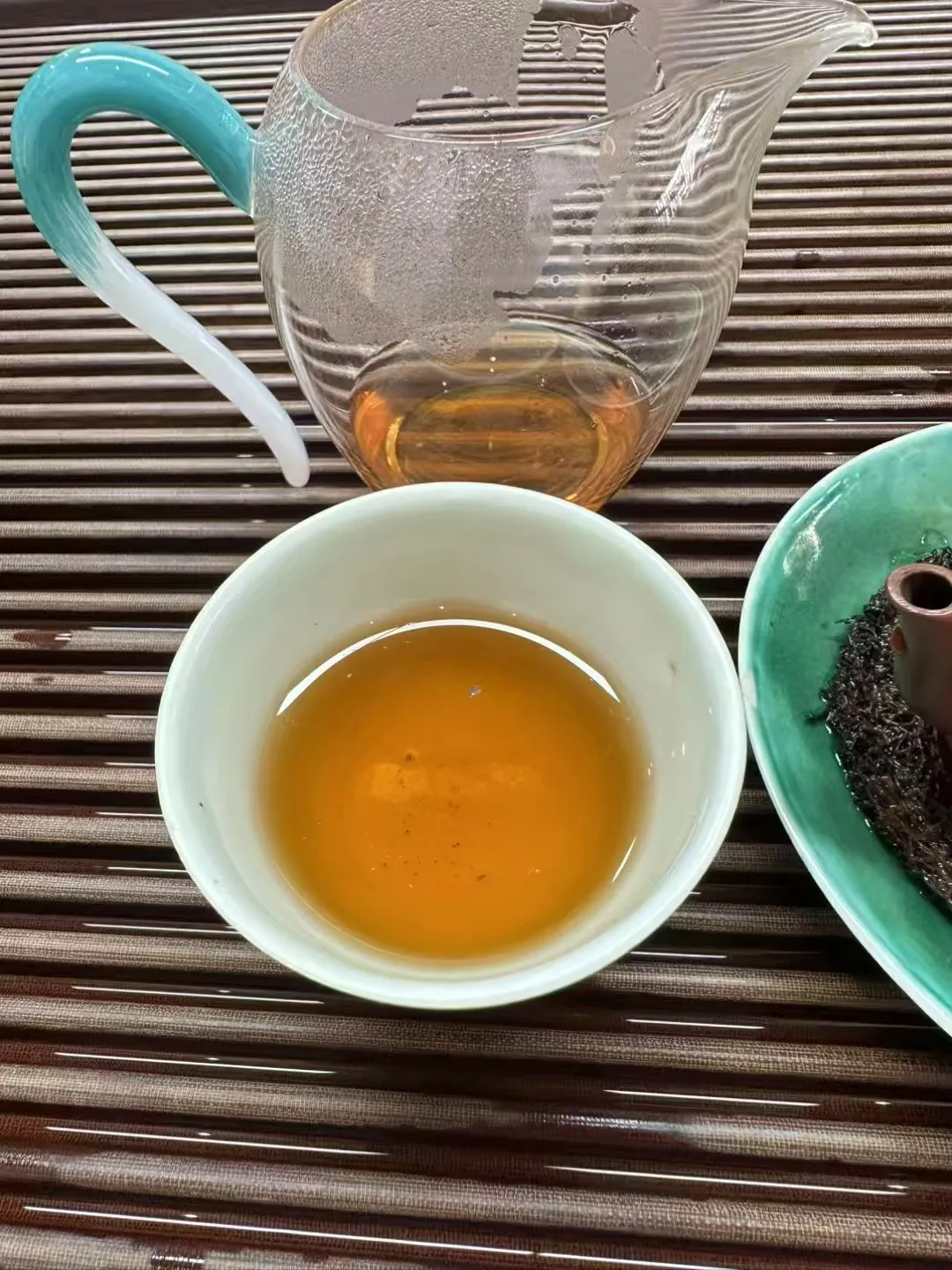 开汤后橙红油亮,蜜香占主导,伴随特殊花果香。茶汤入口微涩,有苦底,汤感浓酽厚重,口感柔中带刚,有骨有肉,甜爽陈醇又独具硬朗,生津回甘迅速。