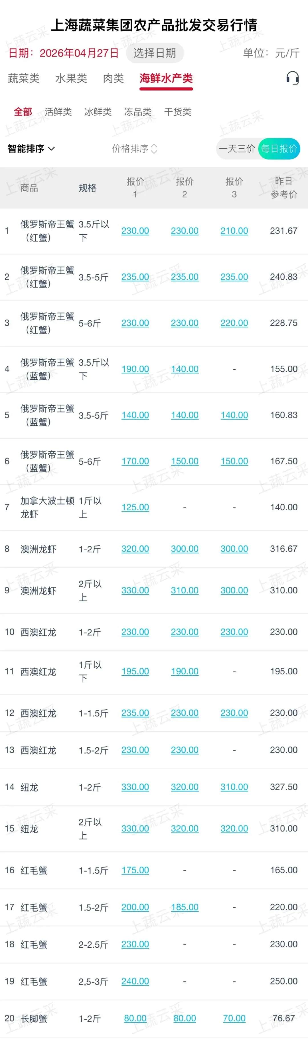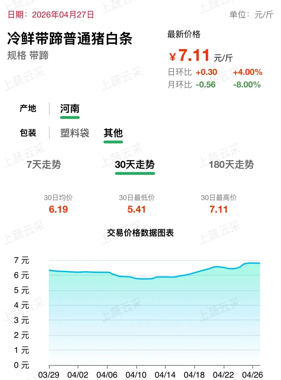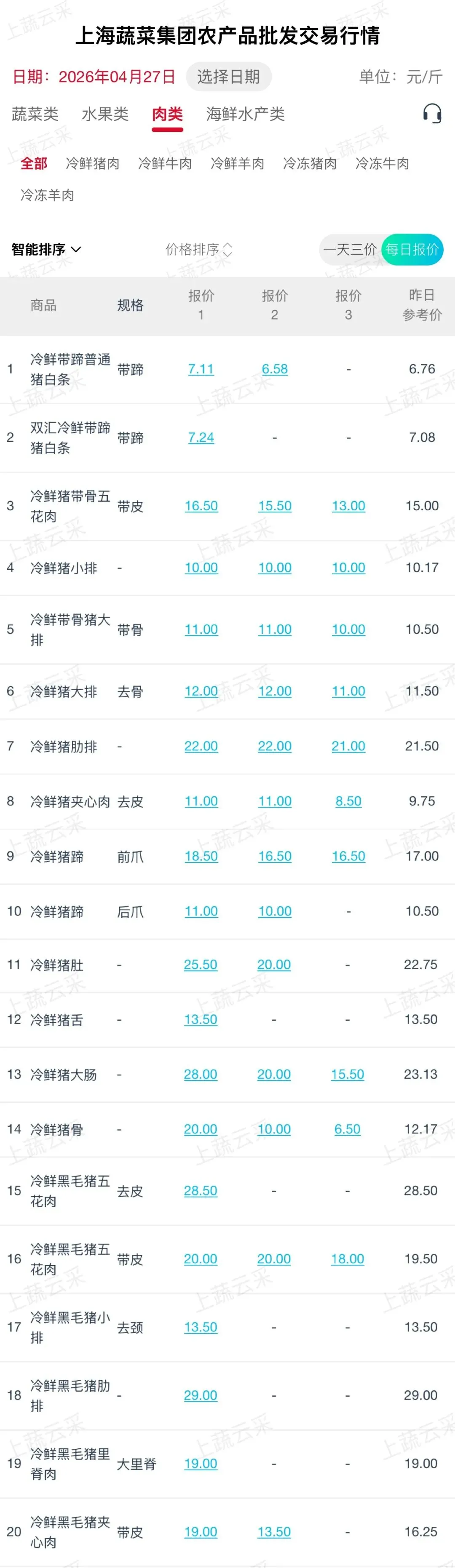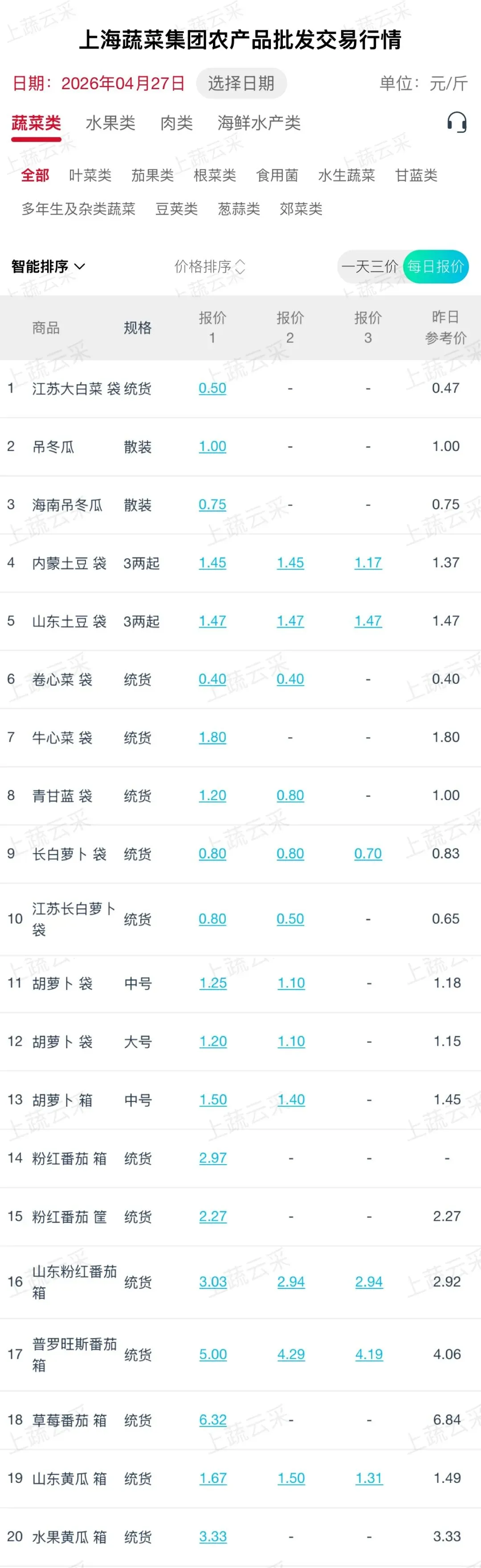 蔬菜、水果、肉、海鲜水产等更多品类交易行情