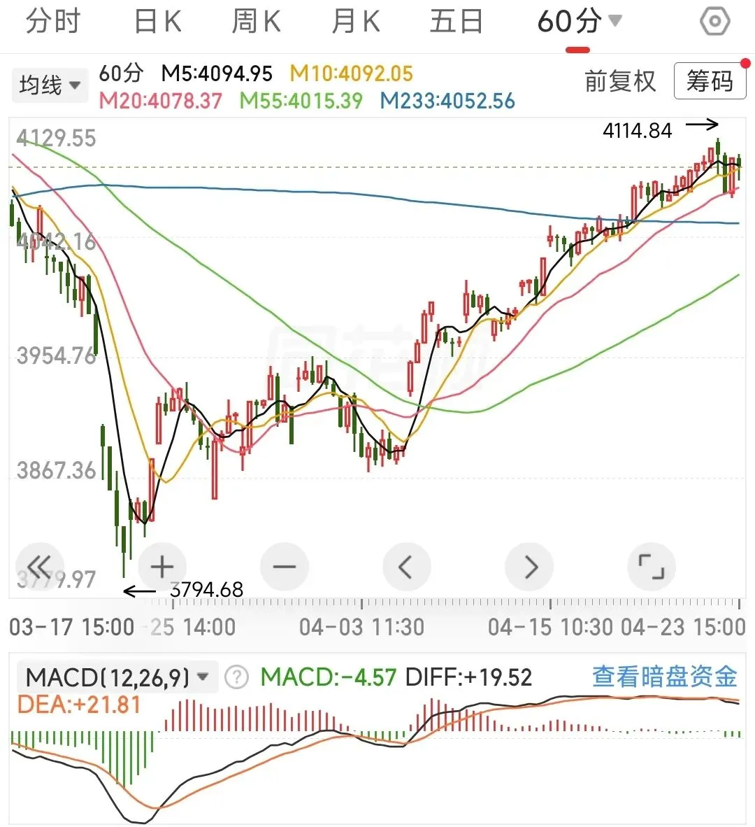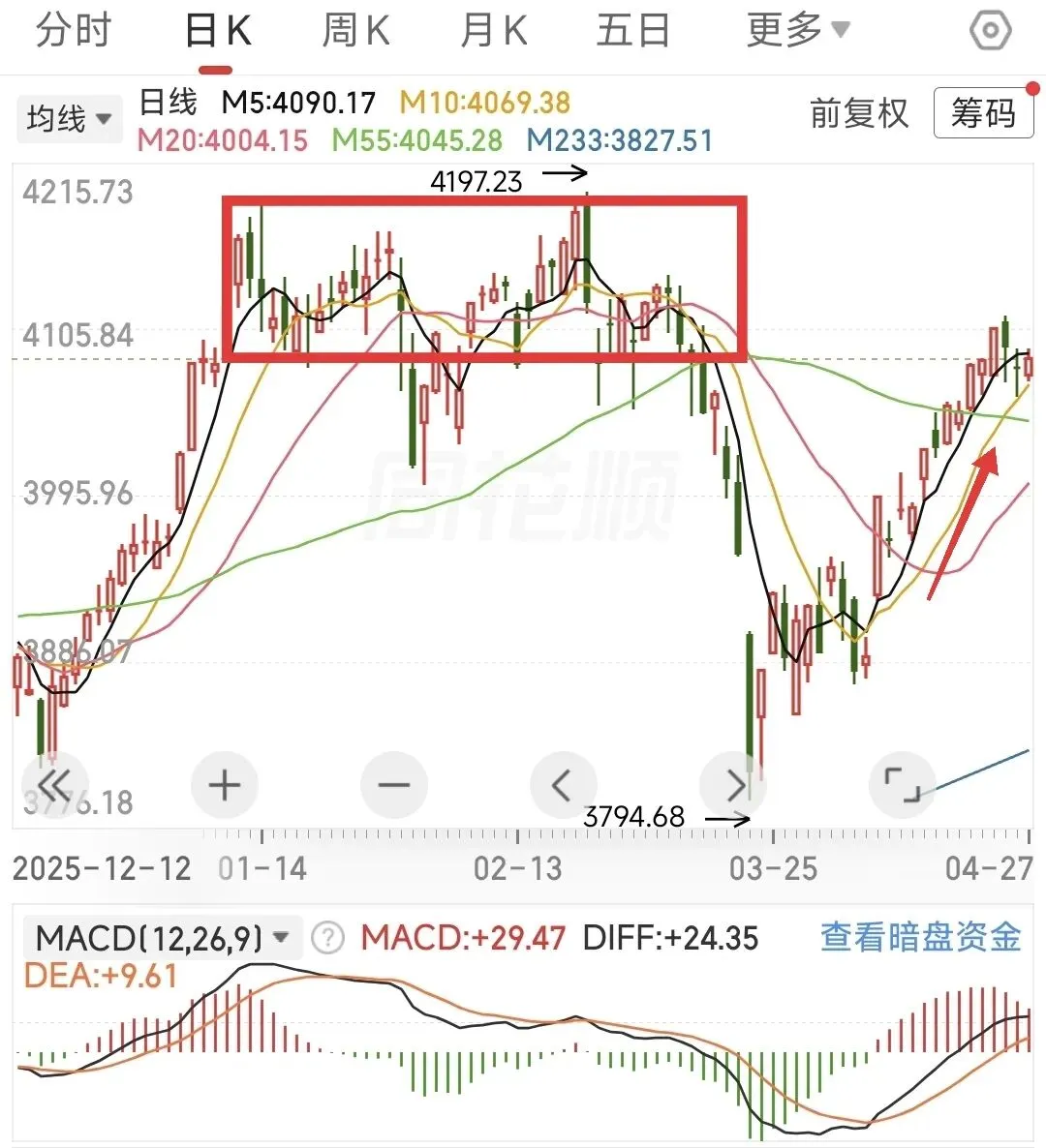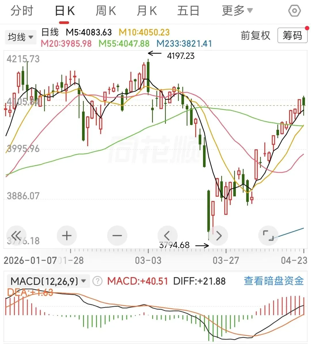 3.五一假期效应:历史经验表明,节前交投量通常萎缩,资金兑现离场意愿增强。今日已出现缩量特征,后续两个交易日量能是否进一步萎缩值得观察。