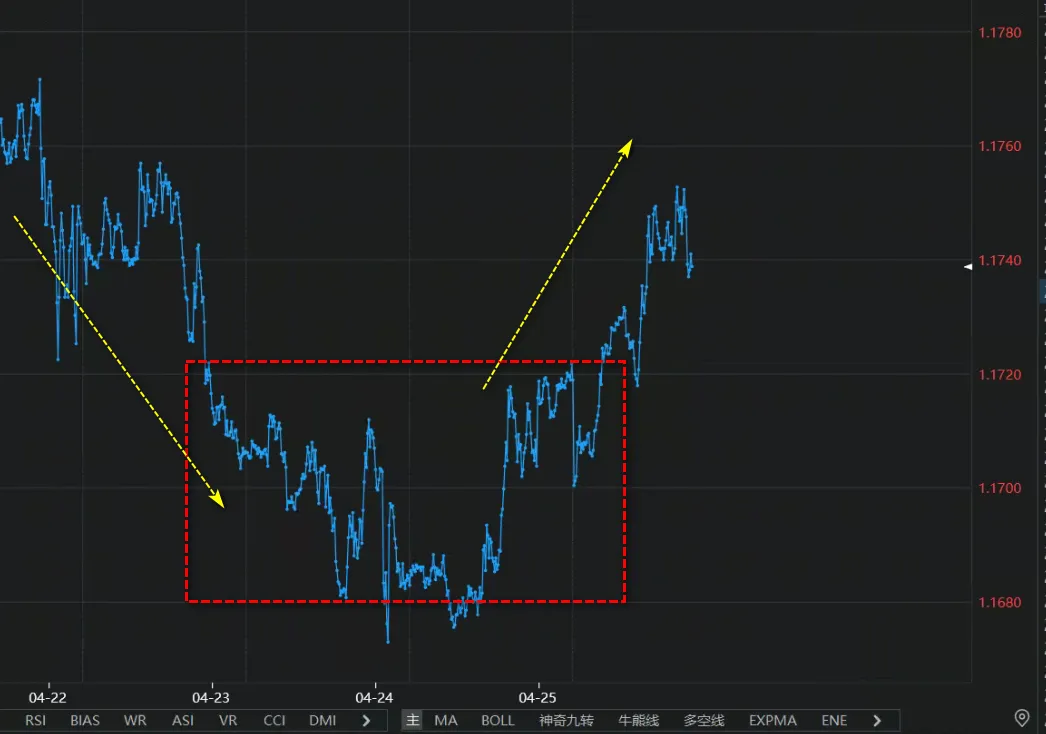 - 当前价格从1.1680附近开始反弹,形成小级别底部逆转形态