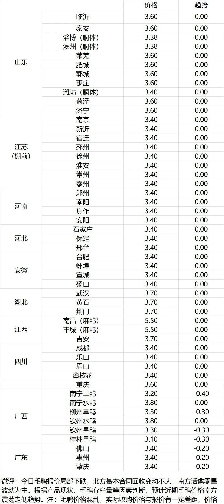 【麻鸭】广东2.1,广西2.2,江西2.2,
