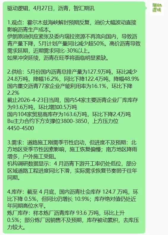 >沥青:超低开工率,驱动行情偏强运行!!!