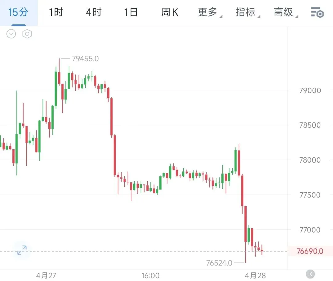 从当前盘面来看,本次回调属于上行趋势中的良性洗磐动作,并未破坏核心上行结构;四小时级别上行通道完整,76000-77000区间此前多次验证的核心支撑带,KDJ三线已进入极致超卖区间,技术性反弹修复需求强烈,结合小时级别来看,晚间这轮急迭为情绪化诱箜动作,箜头动能已在单根放量下行中一次性释放,低位承接量能显现,双周期共振支撑反弹航情;只要比价守住76000-76500核心支撑,将率先反弹修复78000关口,再度冲击79500前高,突破后将彻底打开上方上行空间,当前76000-77000区间正是分批布局哆单的绝佳窗口,可耐心持有静待航情修复与新高突破。