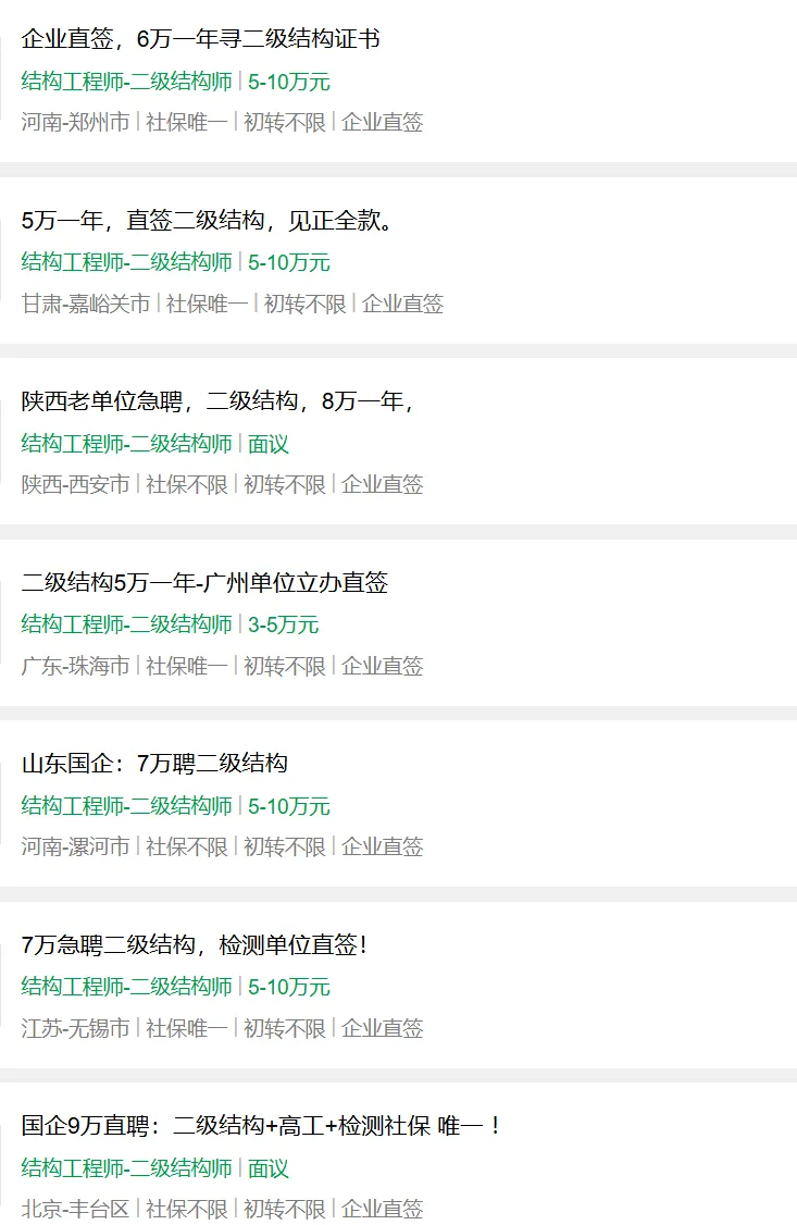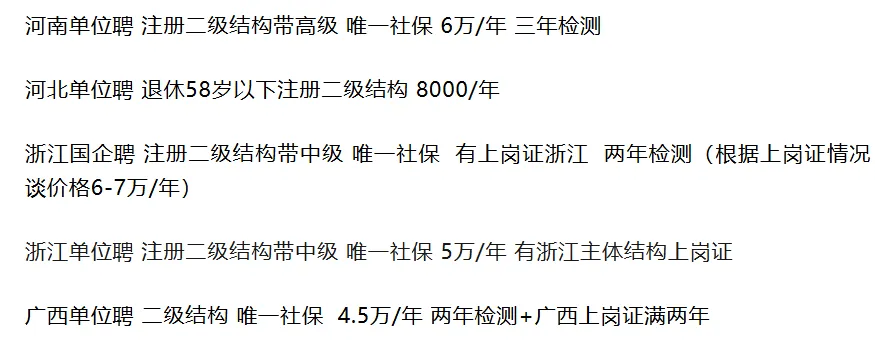 本文所贴信息来自于招聘网站、guakao网站、土木类公众号、微信群、QQ群等渠道汇总的信息,有很高的也有很低的。大部分都是真实的,当然少不了用高价吸引加联系方式的中介。