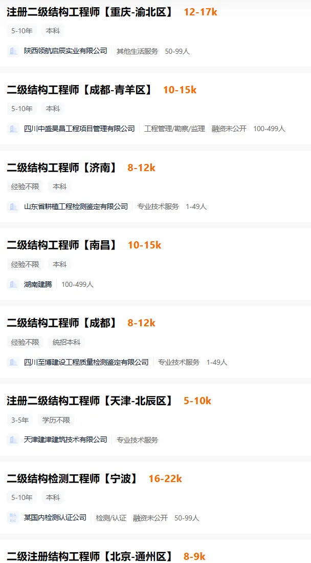 二级结构基本上都是是检测单位在要,如果想本地发展的老哥,可以挨个联系一下,当然小型设计院、电力院也需要。