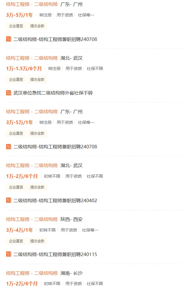 还有,有些省份动态核查资质,时不时会公布哪些单位缺什么证书,也是一个渠道台。岩土结构有哪些渠道找单位兼职/全职看看哪些单位要岩土结构,要多少?
