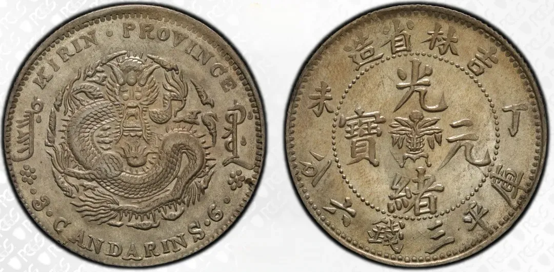 丁未吉林省造光绪元宝三钱六分中心花篮PCGS MS62,成交价70000元,华夏古泉天津站成交
