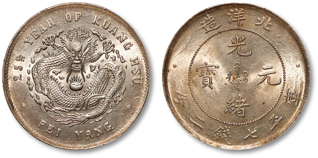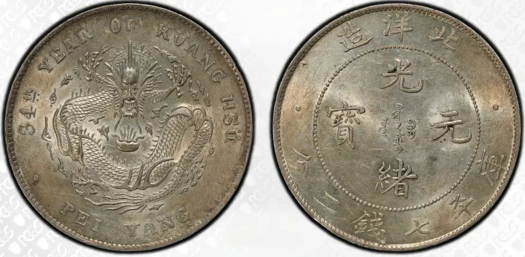 光绪三十四北洋造光绪元宝库平七钱二分开云版,PCGS MS61,成交价53000元,华夏古泉沪宁站成交