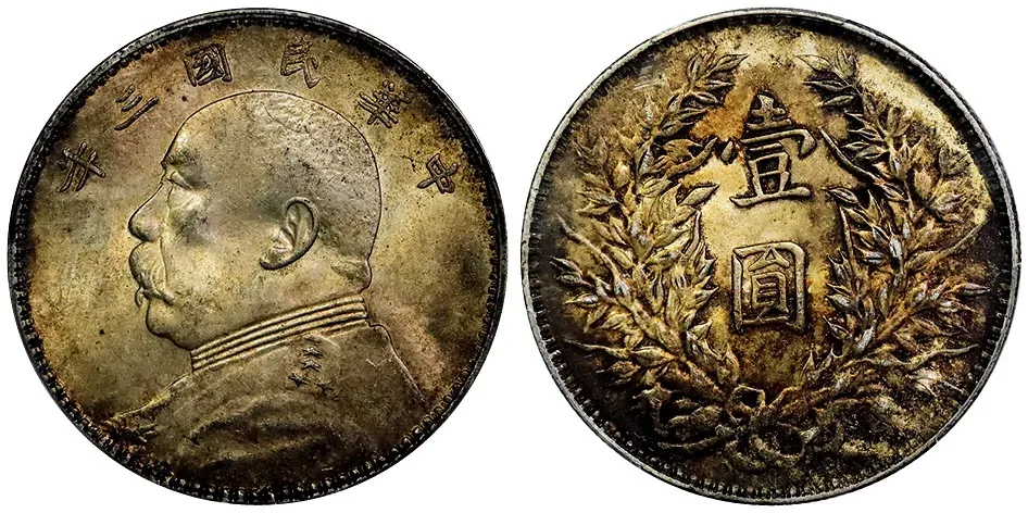 民国三年袁世凯像壹圆 挑华右勾芒,PCGS MS64,成交价14000元,华夏古泉雄安站成交