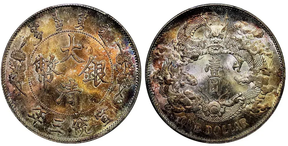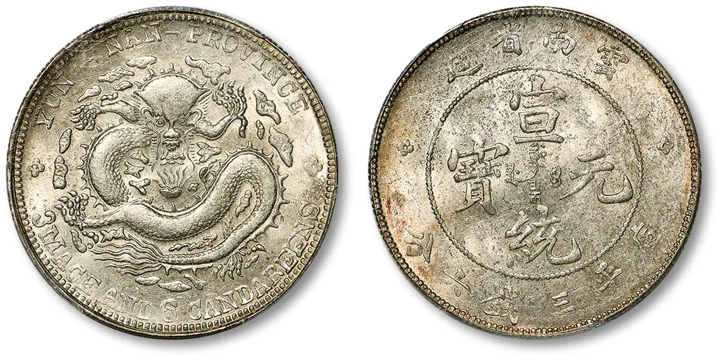 宣统三年大清银币壹圆多火焰版,PCGS MS62,成交价73000元,华夏古泉湖北站成交