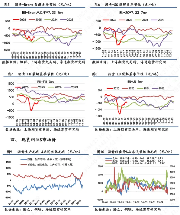 ④利润端,隆众统计的4月26日沥青生产毛利为-697元/吨,环比毛利亏损扩大。