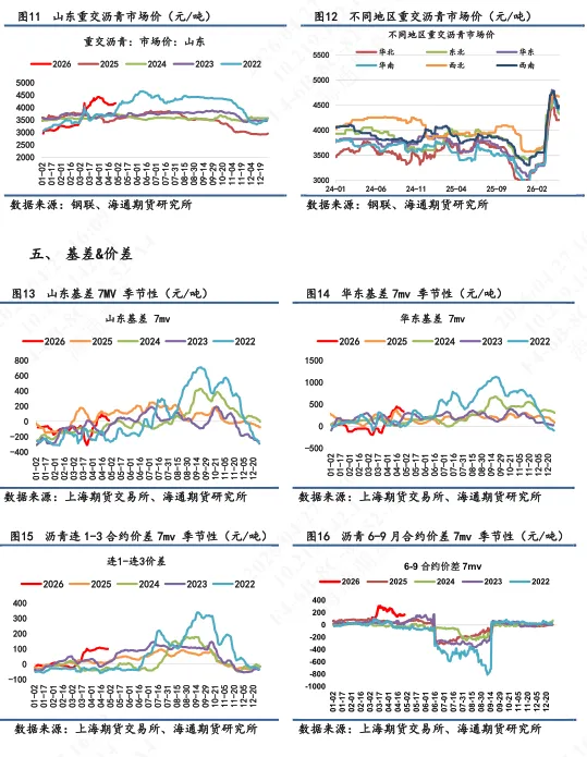 【2】现货报价:截至4月27日,隆众调研统计的重交沥青山东地区市场价3910-4220元/吨,受中石化齐鲁沥青前日结算价下调200元/吨影响,市场高端价格明显承压,低价资源成交为主。华东地区市场价4150-4380元/吨,较前一工作日持稳,区域供需相对均衡,终端购销气氛趋淡。华南地区4月24日现货价4410元/吨,环比-10元,弱势整理。整体来看,山东和川渝现货承压明显,华东价格相对抗跌。