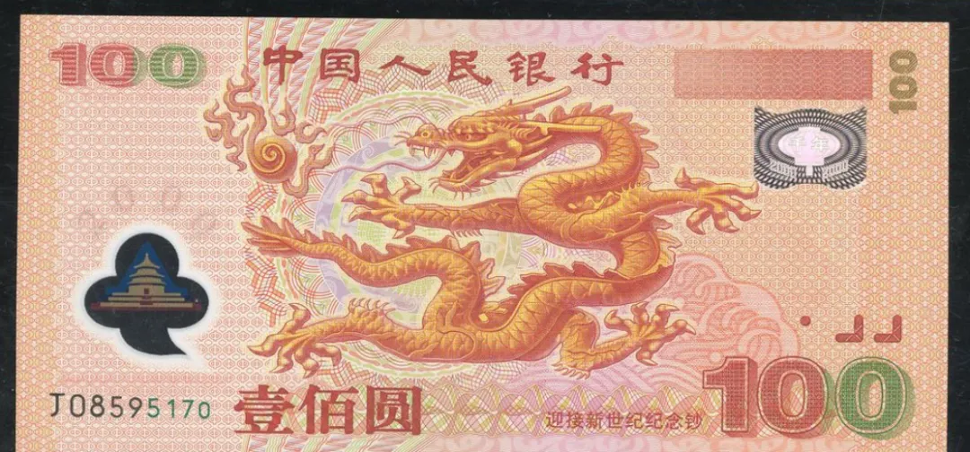 图中这张金灿灿的大票子,不少朋友认得,正儿八经的叫中国人民银行千禧龙钞,1999年世纪之交的时候专门发的纪念钞,正面那条烧得发亮的立龙,盘在票子正中,鳞片精雕细琢,转一个角度还能看到龙眼珠带着神,一晃一晃的,跟真活着一样,票面颜色主打中国人偏爱的金色,还有点亮晃晃的感觉,真让人挪不开眼。