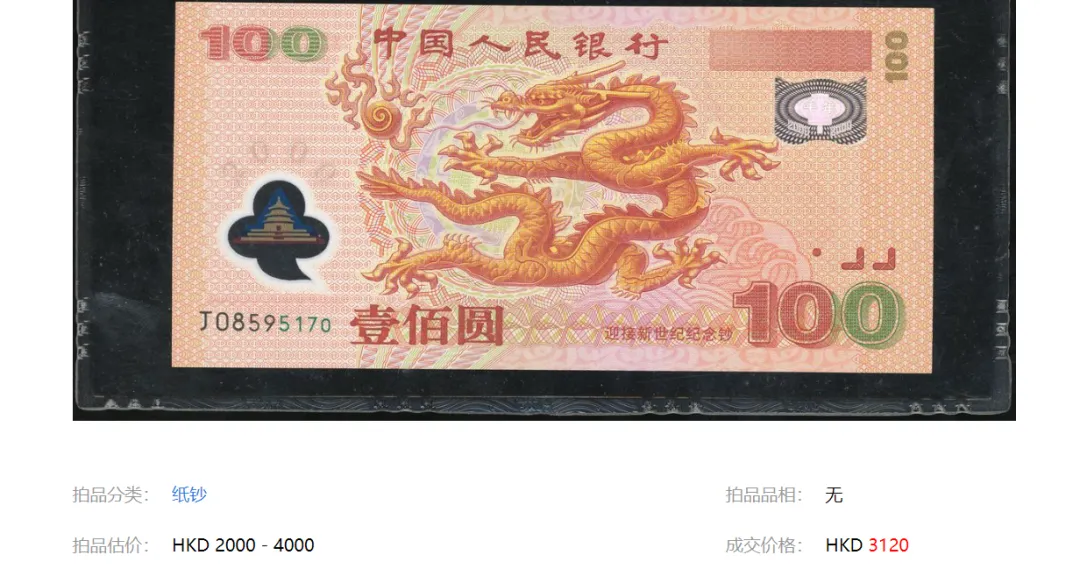 部分千禧龙钞,收藏行情已飙升,这类可卖出3000多