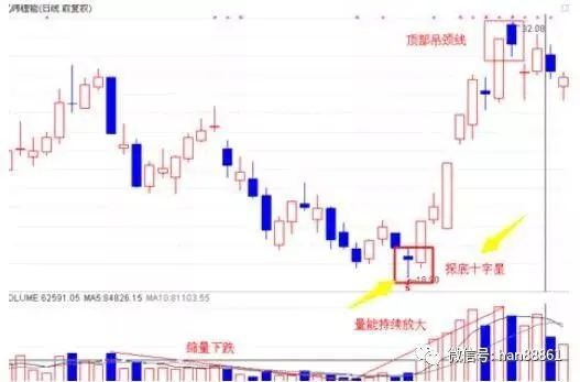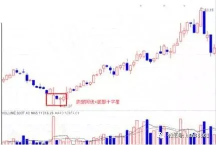 1、 底部十字星的K线组合: