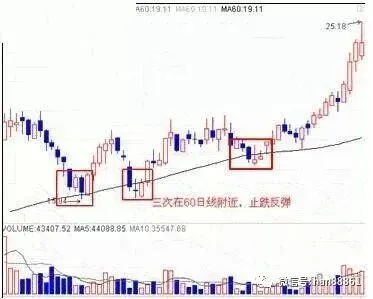 股价回调至中期60日线附近的强势反弹,通常情况下表明,有主力资金在其中运作,这种个股由于主力介入较深,往往回调的幅度和时间较短,反弹的空间较大!