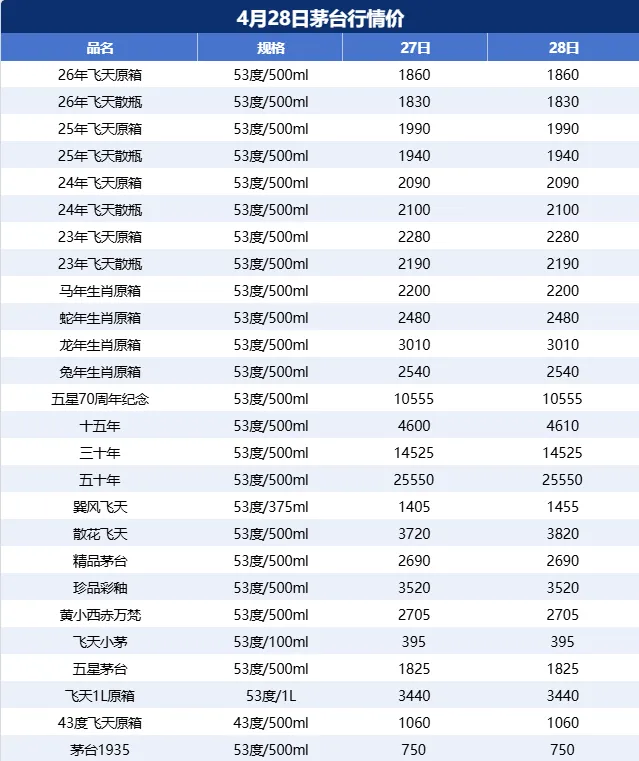 国酒大数据-4月28日茅台行情