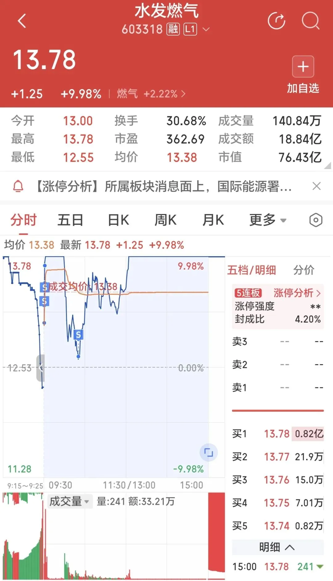 1.水发燃气 最后一笔卖在最低点🥹