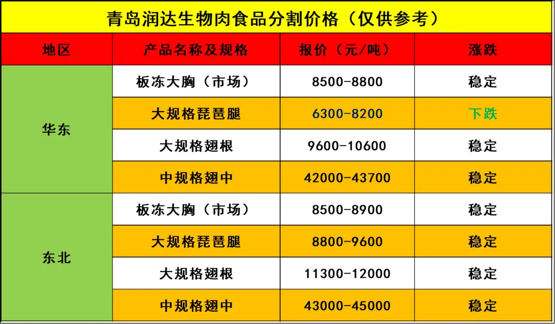 【肉鸡分割品价格行情:价格稳定为主,个别微降】润达生物2026.04.29