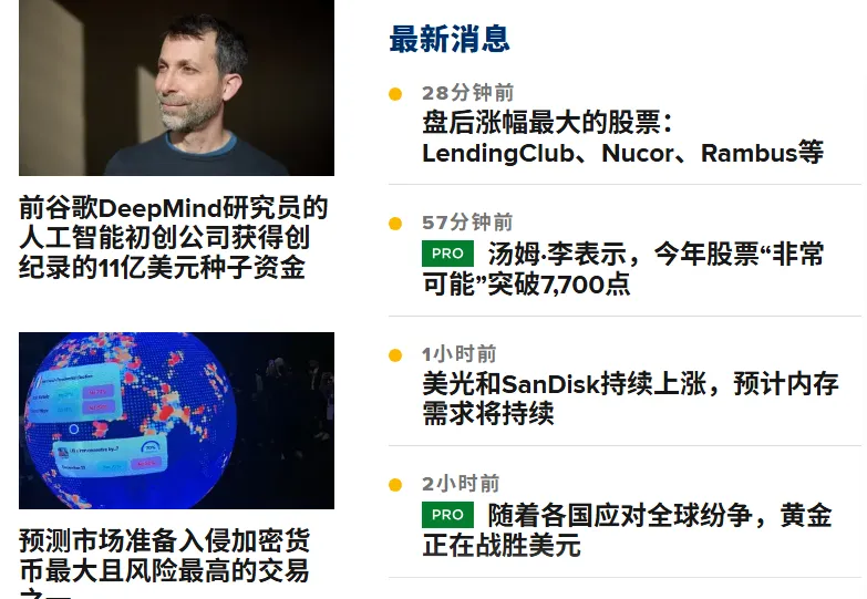 市场28分钟前标普500纳斯达克在稳重财报周谨慎开局中略微上涨。11小时前市场图绘:基准国债收益率可能正盘旋准备突破。6小时前私人信用担忧加剧,做空者对寿险股票的押注大幅上涨,9小时前伊朗冲突受挫,黄金涨势有望恢复。