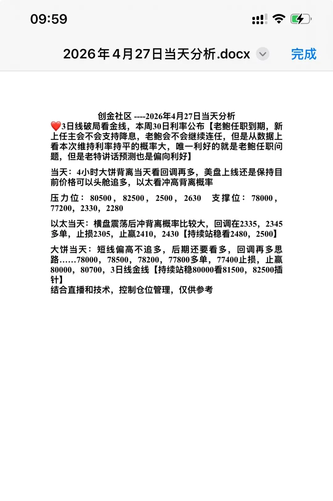 创金社区——2026.4.27 白天行情分析(进社裙请添加客服)