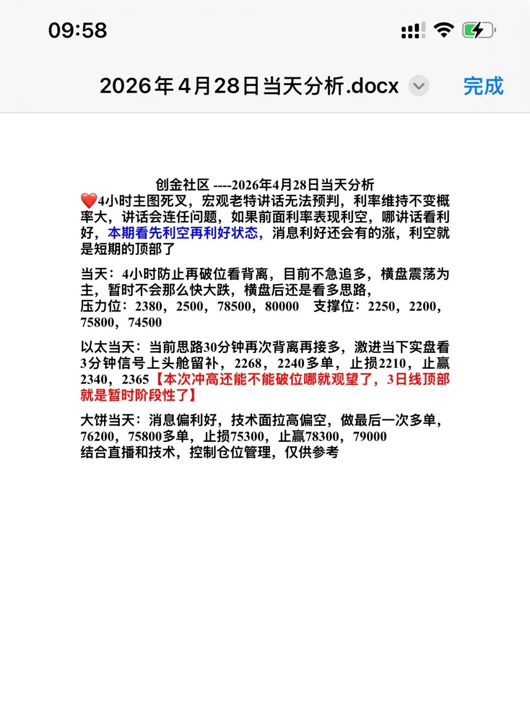 >创金社区——2026.4.28 白天行情分析(添加客服无门槛进社裙)