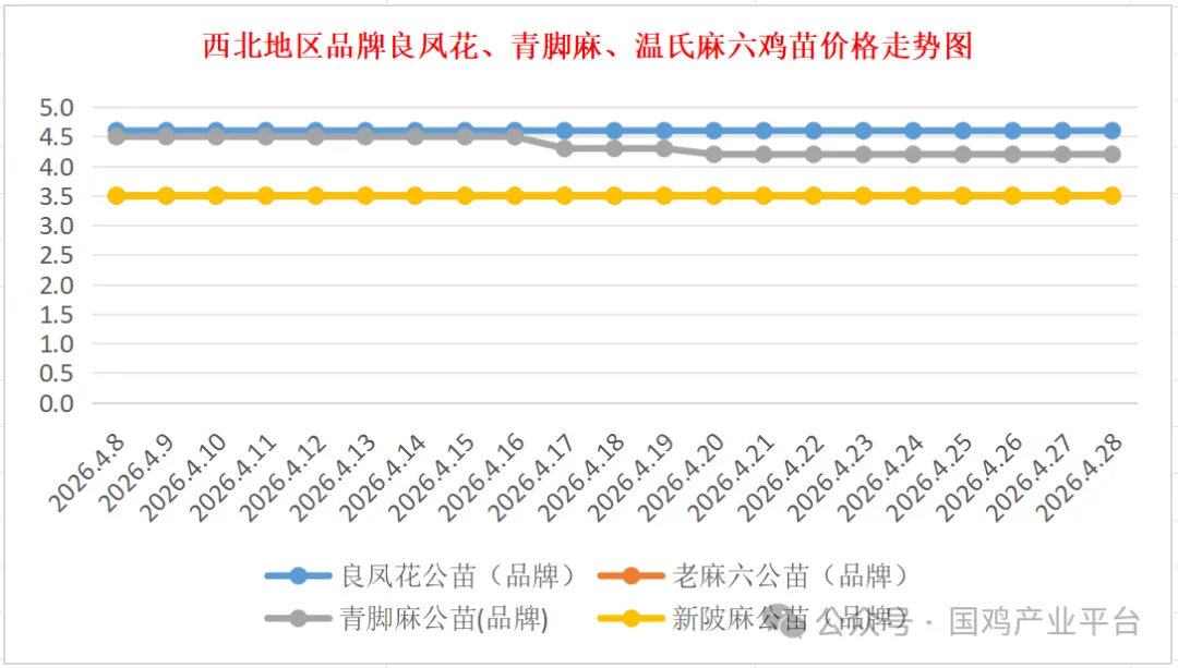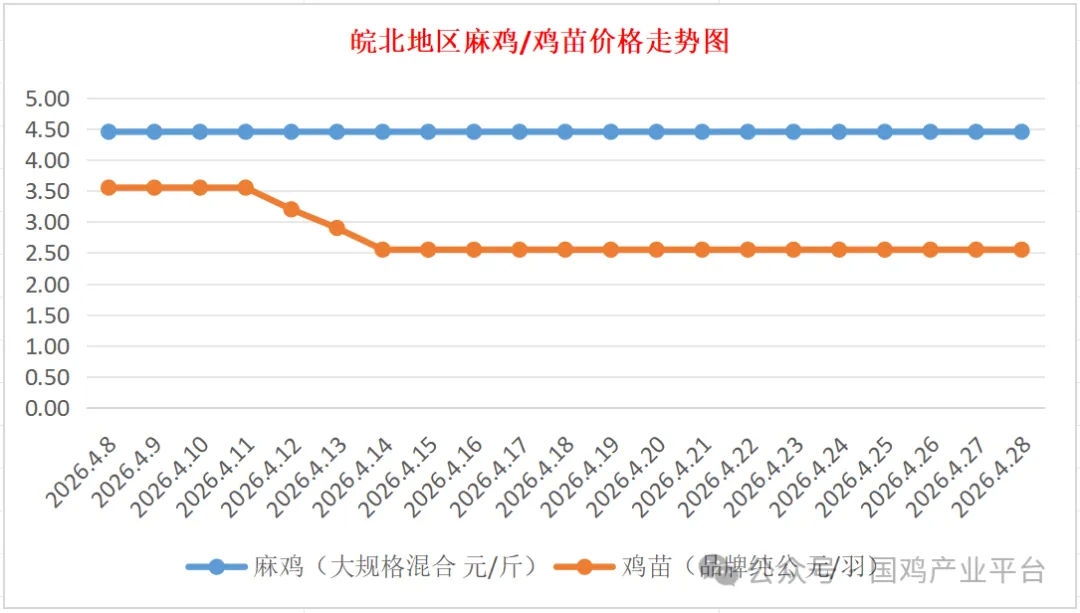 品牌新陂麻:价格稳定,到户价公苗4.50元/羽,稳。