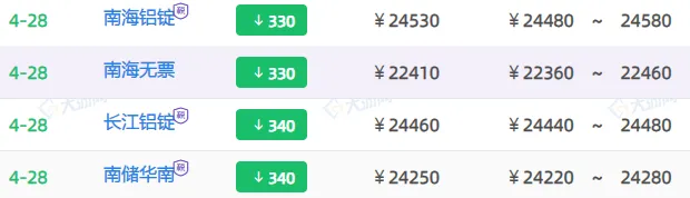 >跌!今日铝价行情!铝锭现货价格(2026.4.28周二)