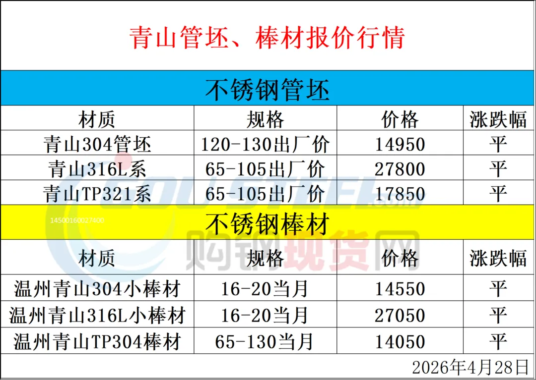 >4月28日青山管坯、棒材报价行情