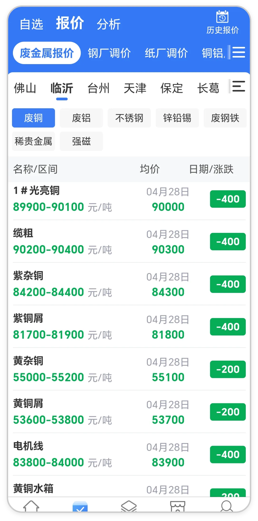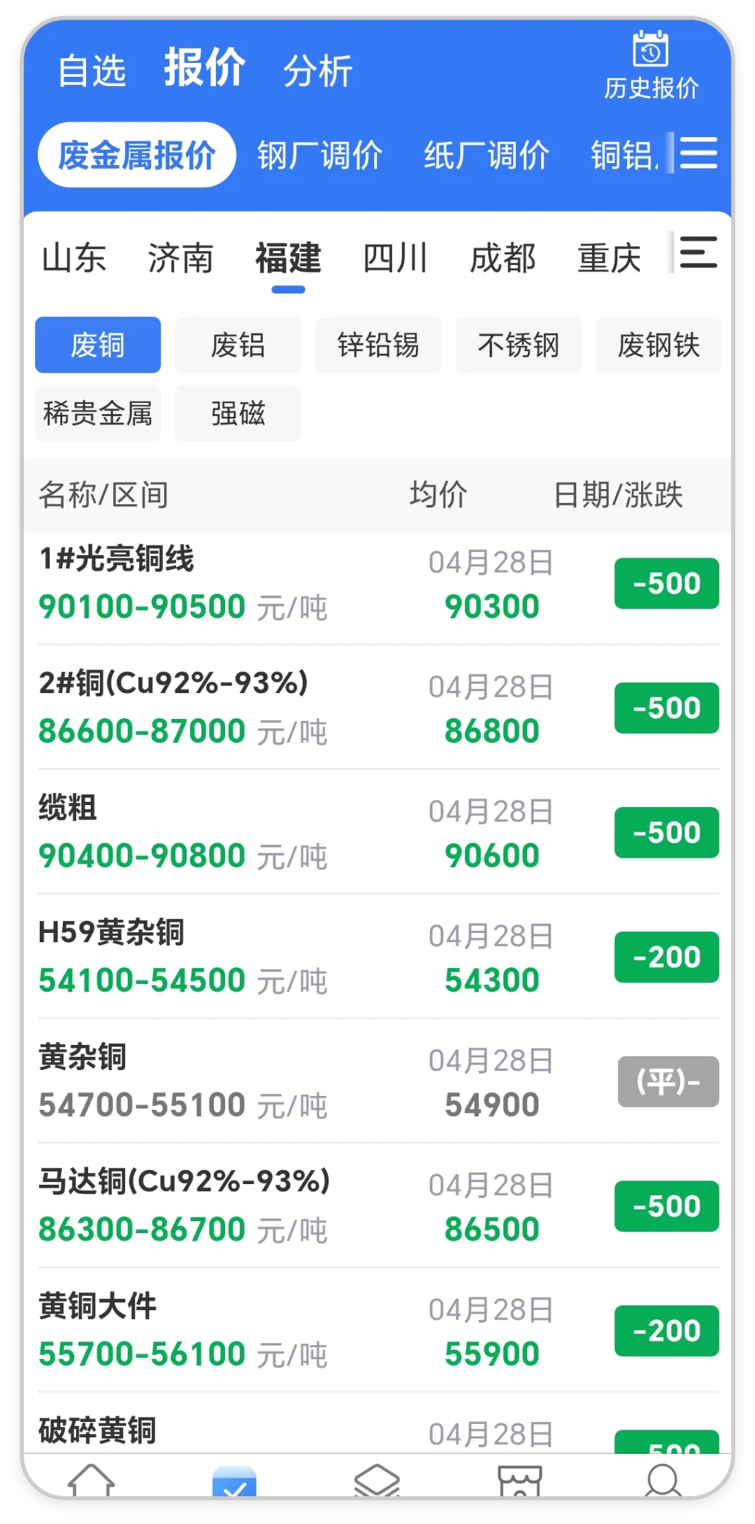 废铜中幅下跌!全国废铜最新价格行情(4月28日)