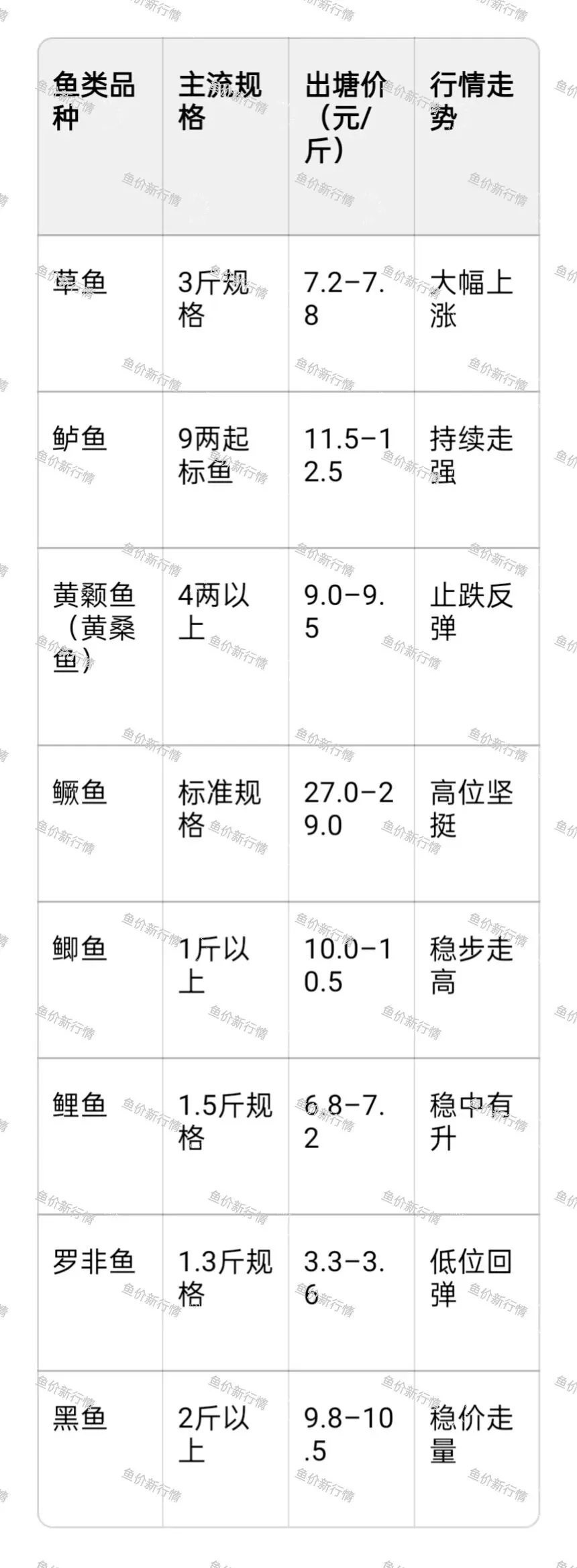 需注意,鱼价受市场供需、天气变化等多种因素影响,实际价格可能会有所波动。
