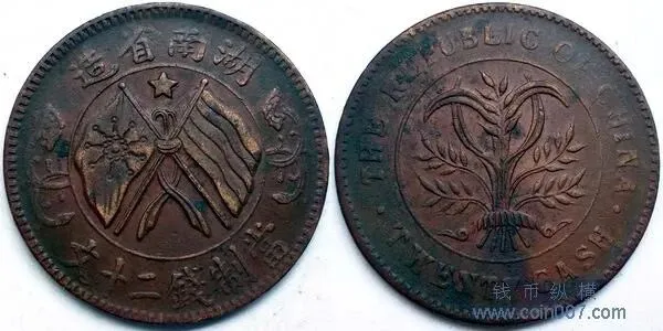 1. 湖南省造双旗上五角星二十文:XF品相4月拍出3.5万元,3年涨幅超5倍