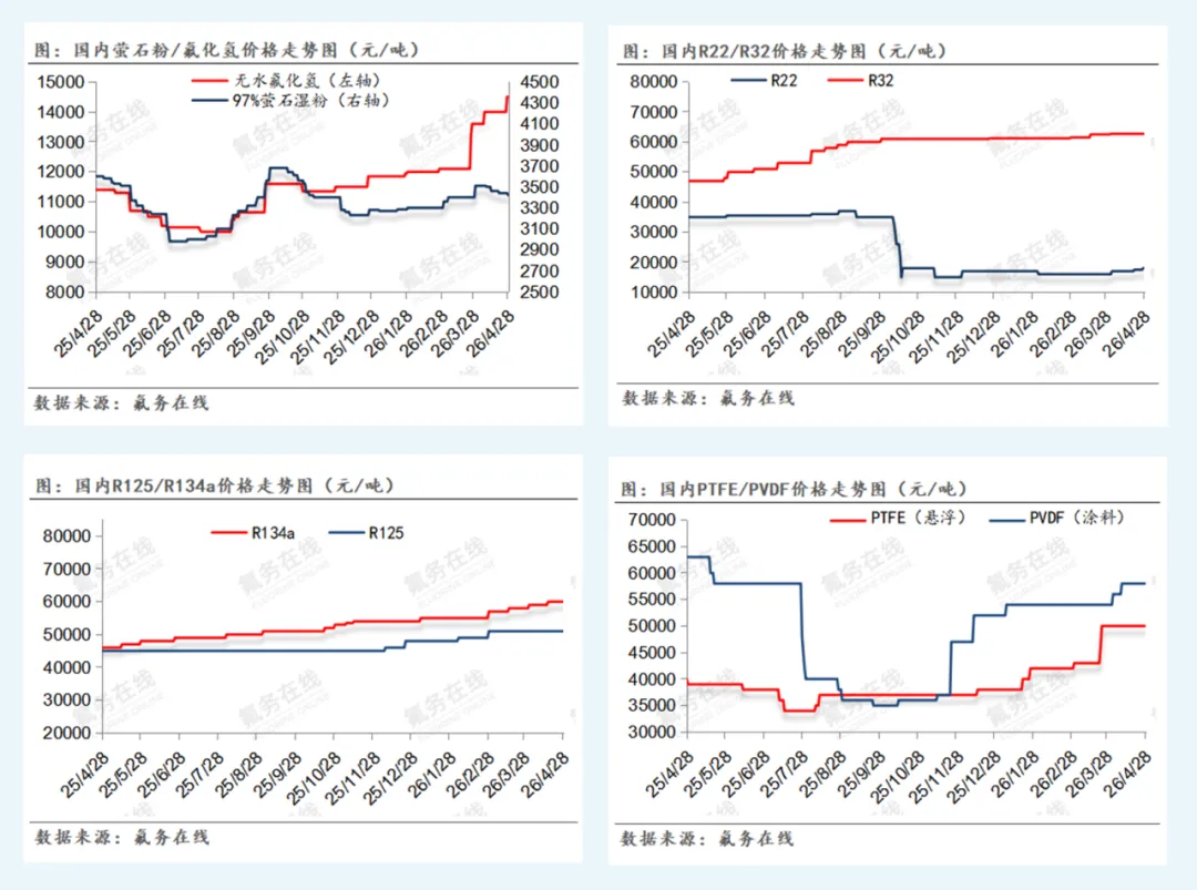 【氟化工】4月27日市场行情简报!氟化氢领涨1300元/吨,R22、氟化锂同步上调
