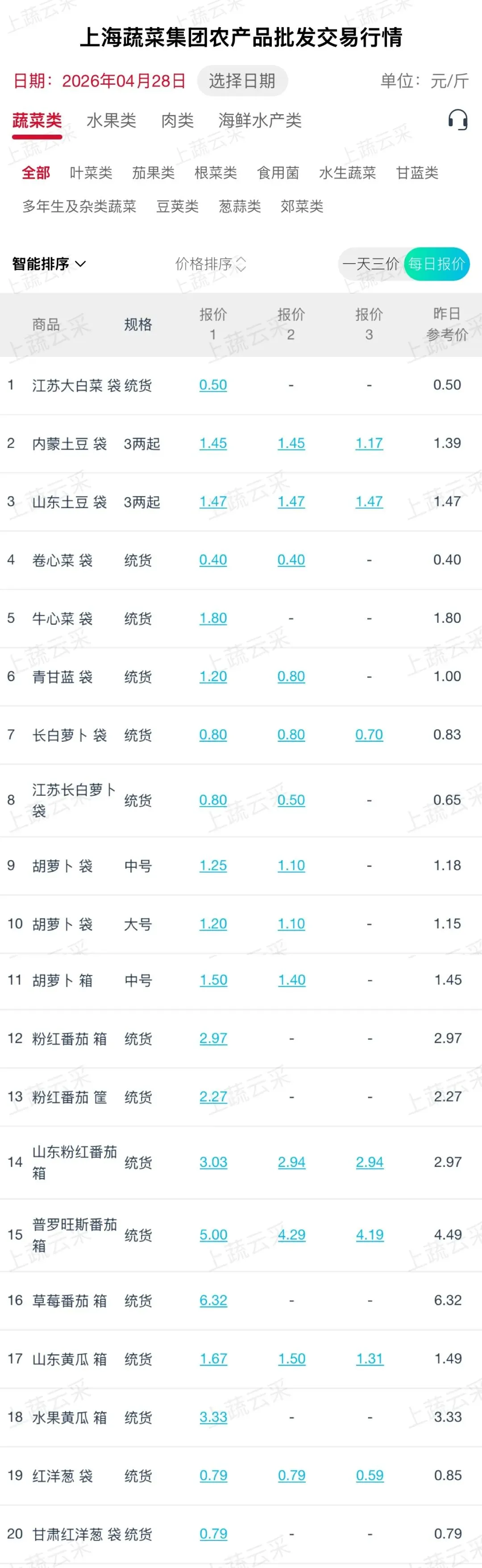 蔬菜、水果、肉、海鲜水产等更多品类交易行情