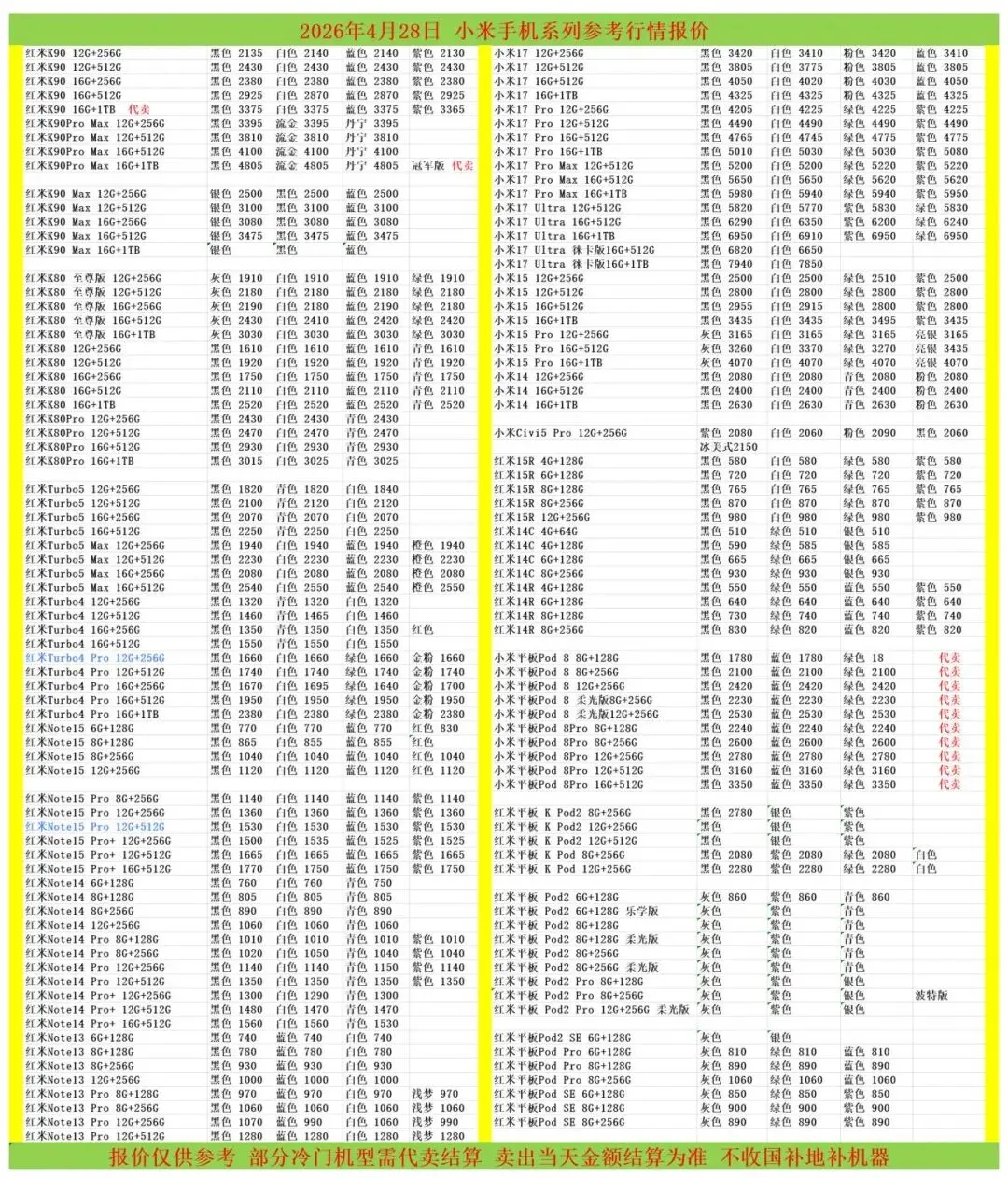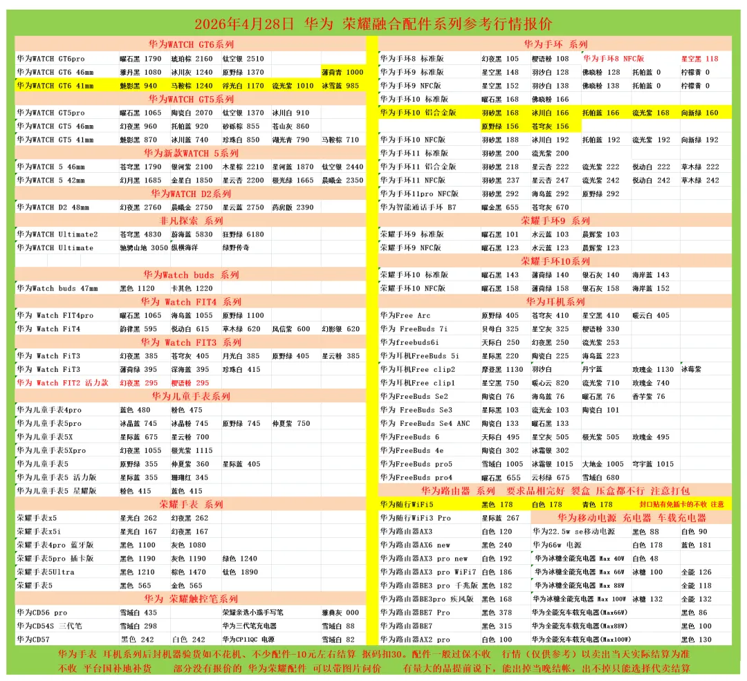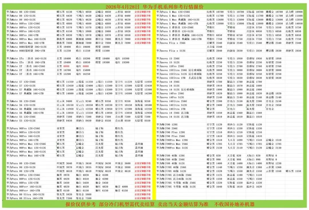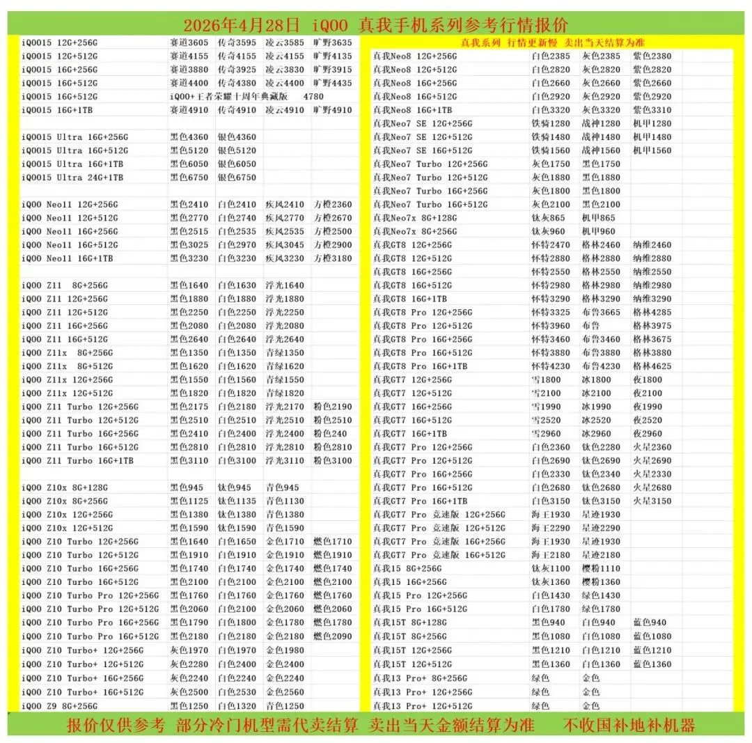 (1)二级市场为自由交易市场,价格实时波动,可能每个小时的卖价都不一样,此报价为华强北市场收货参考行情,实际结算价见公众号:鸟哥撸货数码结算价。
