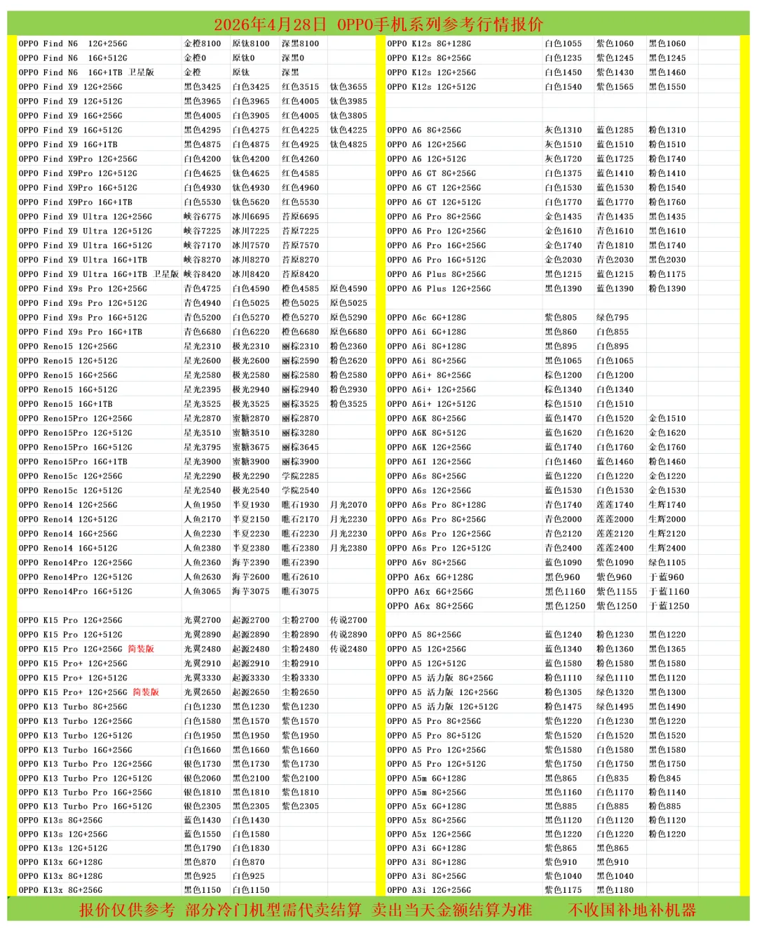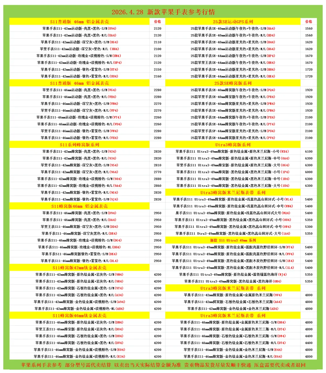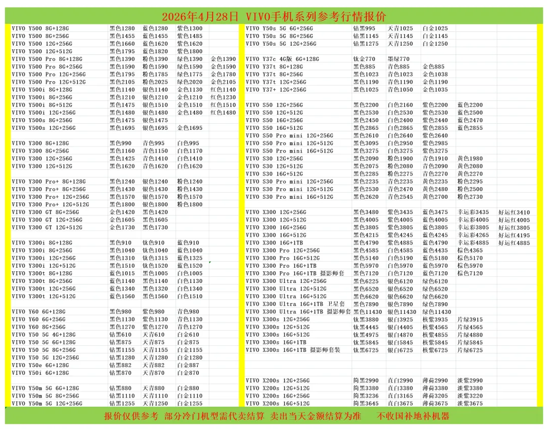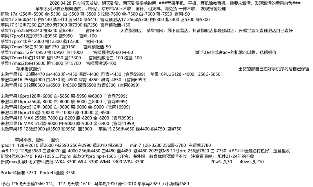 (1)二级市场为自由交易市场,价格实时波动,可能每个小时的卖价都不一样,此报价为华强北市场收货参考行情,实际结算价见公众号:鸟哥撸货数码结算价。