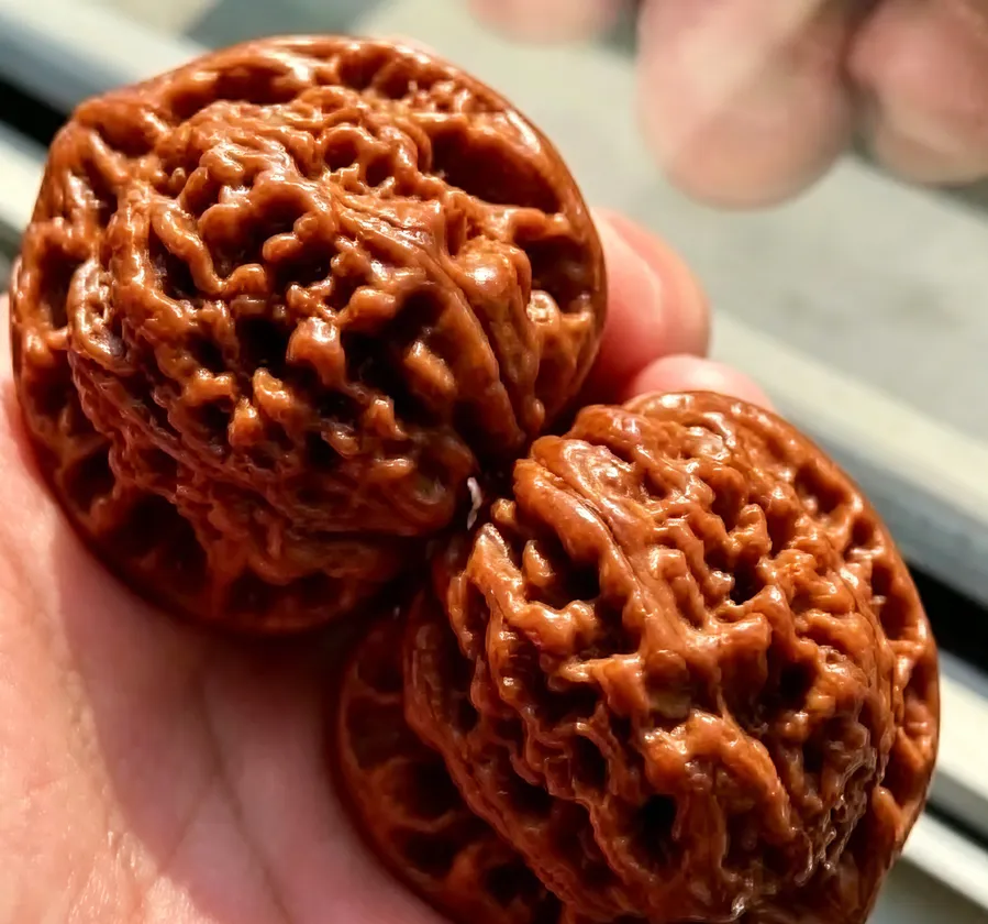 ❌坑一:入手即上手 —— 新核桃到家,先阴干 7-10 天再盘,防止开裂。❌坑二:汗手狂盘 —— 汗液中含有盐分和酸性物质,长期直接接触会腐蚀皮质。❌坑三:只用软布盘 —— 软布只能抛光,无法清理纹路深处的脏污。❌坑四:上油贪多 —— 每次用油量不超过小米粒大小,宁少勿多。❌坑五:追求速成 —— 真正的好包浆需要 3-5 年,那些 "一个月包浆" 的都是在骗你。【结语】核桃盘的是心性