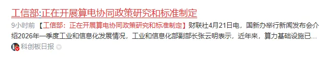 值得注意的是,从3月重磅会议上算电协同首次写入政府工作报告,到4月工信部表示在制定算定协同标准,前后2个月都不到。意味着随着顶层设计的落地,业内普遍预期,算电协同将告别此前的概念探索阶段,进入政策红利释放、产业加速落地的全新发展周期,而电力与算力的深度融合,也将重塑数字经济与能源产业的发展格局。