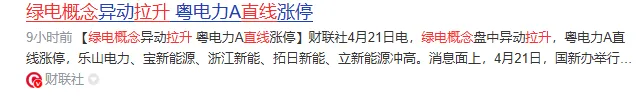 受此影响,绿电概念直线拉升,粤电力A、浙江新能、宝新能源等5只成分股涨停。