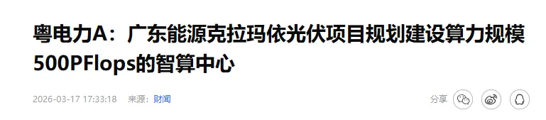 算电协同:2025全年公司风电发电完成54.35亿千瓦时,光伏完成42.18亿千瓦时,水电完成5.63亿千瓦时;旗下克拉玛依光伏项目为算力规模500PFlops的智算中心。