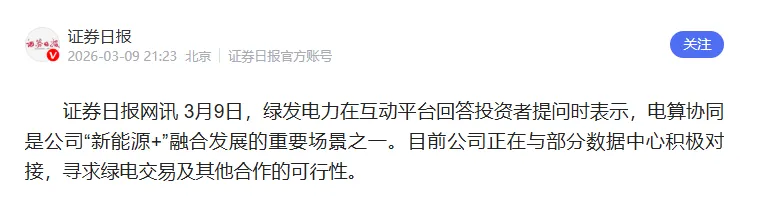算电协同:电算协同是公司“新能源+”融合发展的重要场景之一。目前公司正在与部分数据中心积极对接,寻求绿电交易及其他合作的可行性。