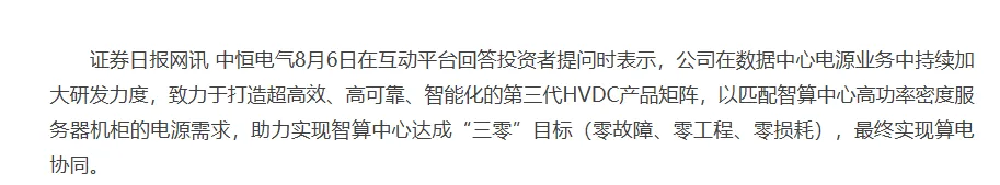算电协同:公司数据中心电源业务助力智算中心达成“三零”目标——零故障、零工程、零损耗,最终实现算电协同