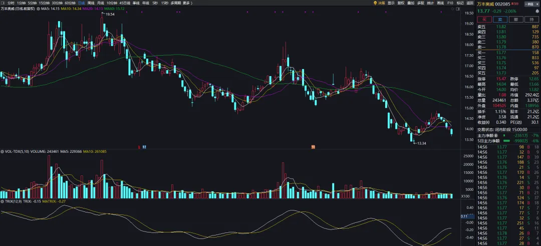 长线票:众合科技天量分歧,先让子弹飞一会儿。片仔癀耐心布局。苏能股份安心持有。 中线票:万丰奥威回调,钝刀割肉,连续阴跌,十分难受,资金为了回避业绩的不确定性,短期操作非常谨慎,先拿着。 张家界回调,近期的走势明显强于板块,持有。莲花控股收涨,锁仓不动,先等一个历史新高。人民网回调,持有。省广集团回调,业绩上来看主业表现较差,持有等修复。随着市场高位抱团票逐步瓦解,亏钱效应会进一步扩散,建议顺势而为,谨慎追高。