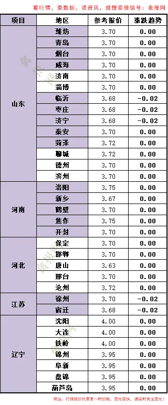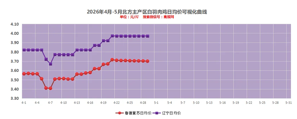 (2)辽宁地区:a、统一明面报价保持稳定,主流价格3.95-4.00元/斤;b、毛鸡局地开始增加,收购压力不大。